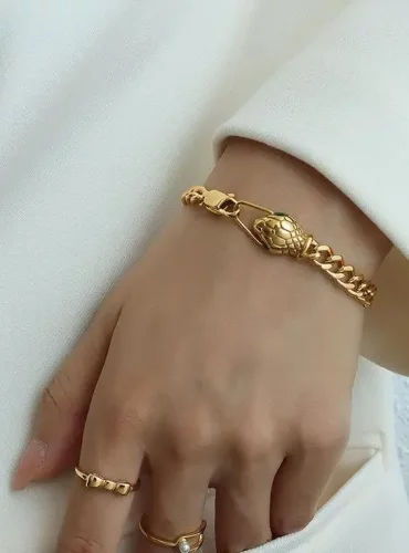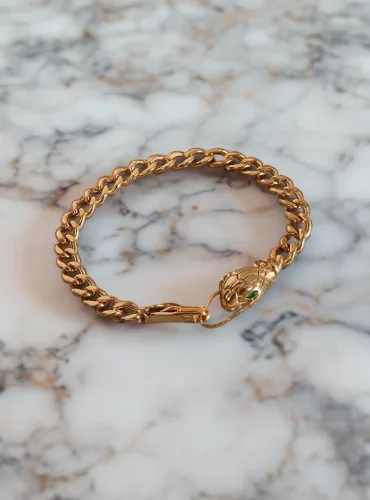 Au cœur de la conception de ce bracelet se trouve le motif du serpent, un symbole ancien qui a captivé les cultures du monde entier avec ses significations variées, allant de la sagesse et de la fertilité à la guérison et à la protection. La forme du serpent, ondulante et fluide, s’enroule avec grâce autour du poignet, offrant une silhouette envoûtante qui complète toute tenue, qu’il s’agisse d’un look décontracté chic ou d’une élégance de soirée.